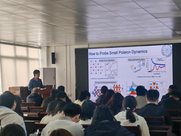 1117日上午,厦门大学杨晔教授在博学楼427会议室为我院凝聚态方向的研究生作了题为《过渡金属化合物中光生载流子自陷动力学》的报告。