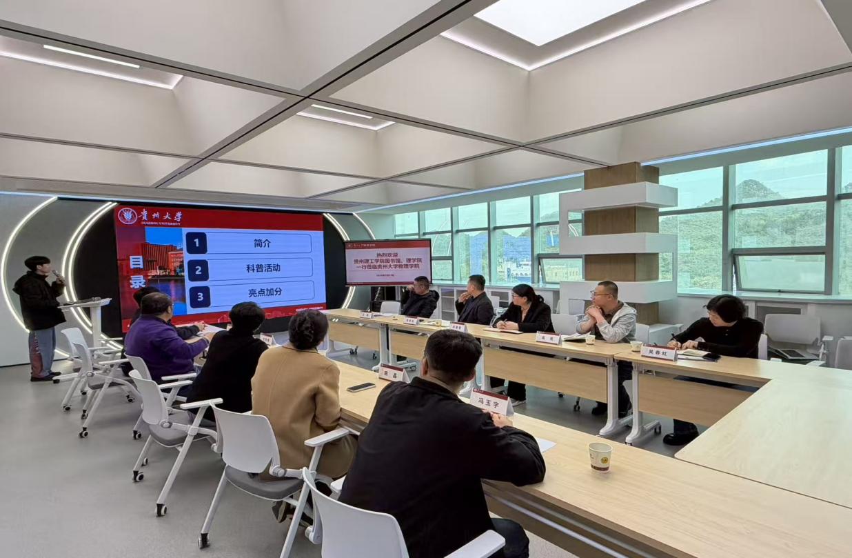 双方重点围绕贵州理工学院拟开展的“全校性系列科普讲座”交换了意见,并就学科专业发展、人才培养等议题进行了交流,探讨了师资互访、教学科研合作等具体路径。双方一致认为,通过两校优势资源共享,能够实现相互促进、共同提升学科建设与人才培养水平。