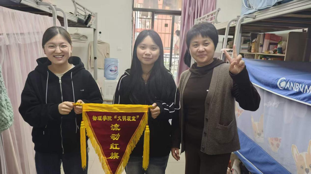 此次学院领导班子及关工委深入学生宿舍走访调研并授旗,是物理学院落实学校关工委工作要求和“一站式”学生社区建设要求、推动管理服务力量下沉、贴近学生实际的具体举措。活动不仅加强了对学生日常生活的关心指导,更有力推进了文明寝室建设,也增强了学生的集体荣誉感和归属感。学院表示,将持续深化关工委工作和“一站式”学生社区建设内涵,常态化开展文明寝室创建与评比活动,将育人工作更实更细地落实到学生成长发展的各个环节,为培养全面发展的新时代物理人才提供坚实保障。